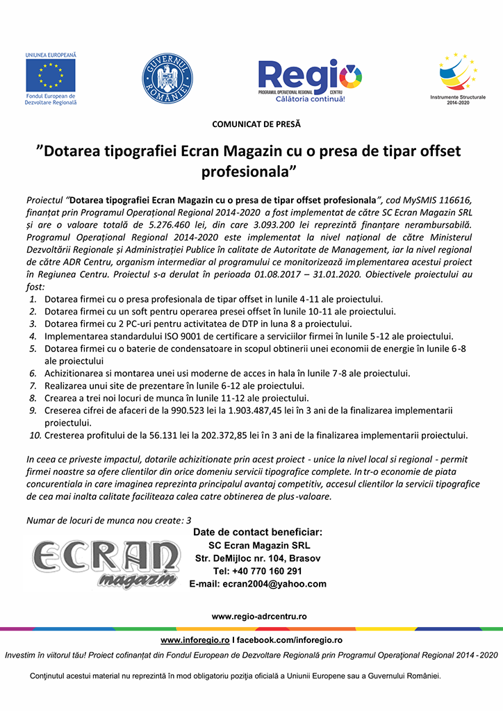 Tipografia Ecran Brașov – Proiecte